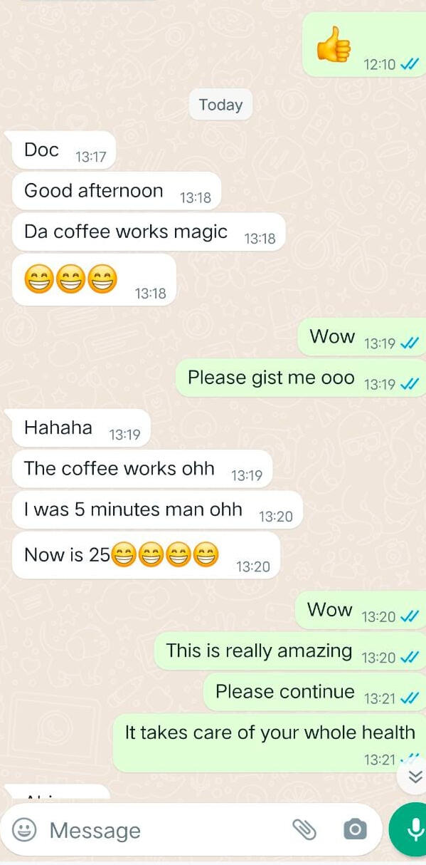1. Boost energy levels2. Organically increase size and length of penis3. Boost libido4. Boost sperm count5. Increase sperm motility for easy fertilization for pregnancy6. Treat infectious diseases especially STDs and UTIs7. Eliminate body pains even sprained neck8. Boost your sexual performance in duration and cycles (rounds)9. Relief and prevent prostate10. Boost male hormone11. Eliminate renal disorders12. Improve vision13. Helps with Diabetes Type 214. Increase alertness.15. Builds muscles16. Relieves Menstrual Flow Symptoms17. Treats Malaria & Thyphoid18. Helps with tummy fats & weight loss etc+